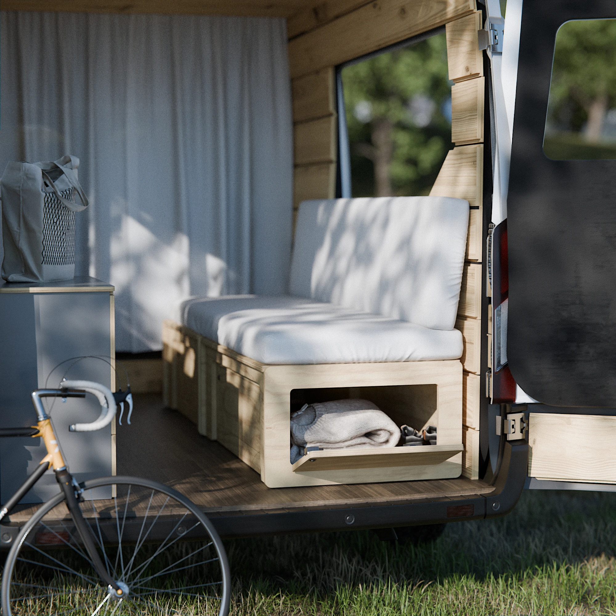 ¿Qué es un kit camper Montgó? Nuestro kit camper Montgó es una cama extensible que cuenta con almacenaje bajo la cama, ideal para camperizar tu
