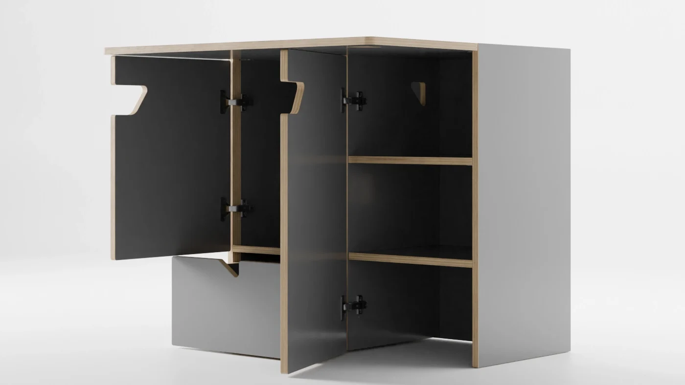 El Armario camper Caroig es la opción perfecta para optimizar al máximo el espacio en tu camper. Con un diseño inteligente y compacto, este armario ha sido diseñado pensando en la comodidad y practicidad necesaria dentro de una furgoneta. Cuenta con una mesa que se despliega fácilmente, proporcionando un área estable para cocinar, comer y trabajar. Dos áreas de almacenaje divididas por puertas, una de ellas con cuatro baldas, este armario te brinda la flexibilidad necesaria para adaptarlo a tus necesidades. Ya sea para guardar alimentos, ropa, equipo de camping o cualquier otro artículo.