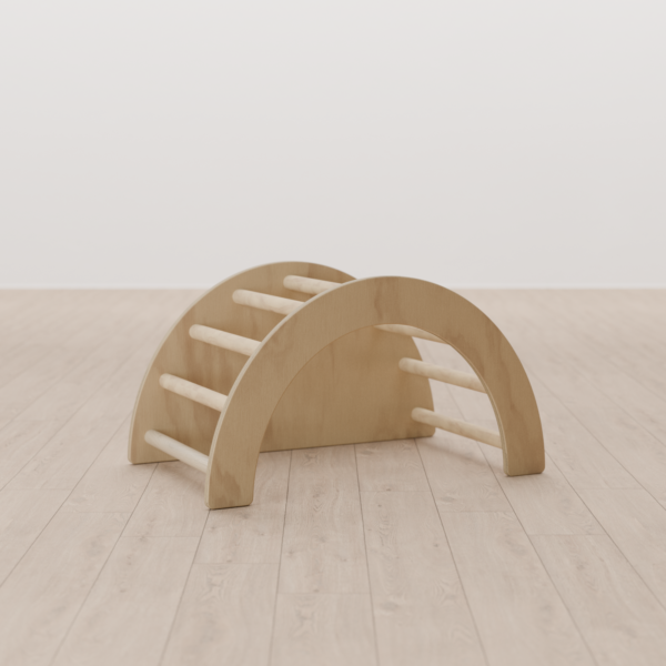 Arco : Este mueble versátil puede ser utilizado como un balancín, un túnel o un puente, estimulando el desarrollo motor grueso y la creatividad. El arco de PLYKIT es un excelente ejemplo de cómo un solo mueble puede ofrecer múltiples formas de juego y aprendizaje.