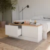 Además, su superficie superior puede utilizarse como asiento o como superficie decorativa, perfecta para colocar cojines, cestas o elementos decorativos. Este equilibrio entre belleza y funcionalidad lo convierte en un mueble imprescindible para quienes valoran los espacios organizados y con estilo.