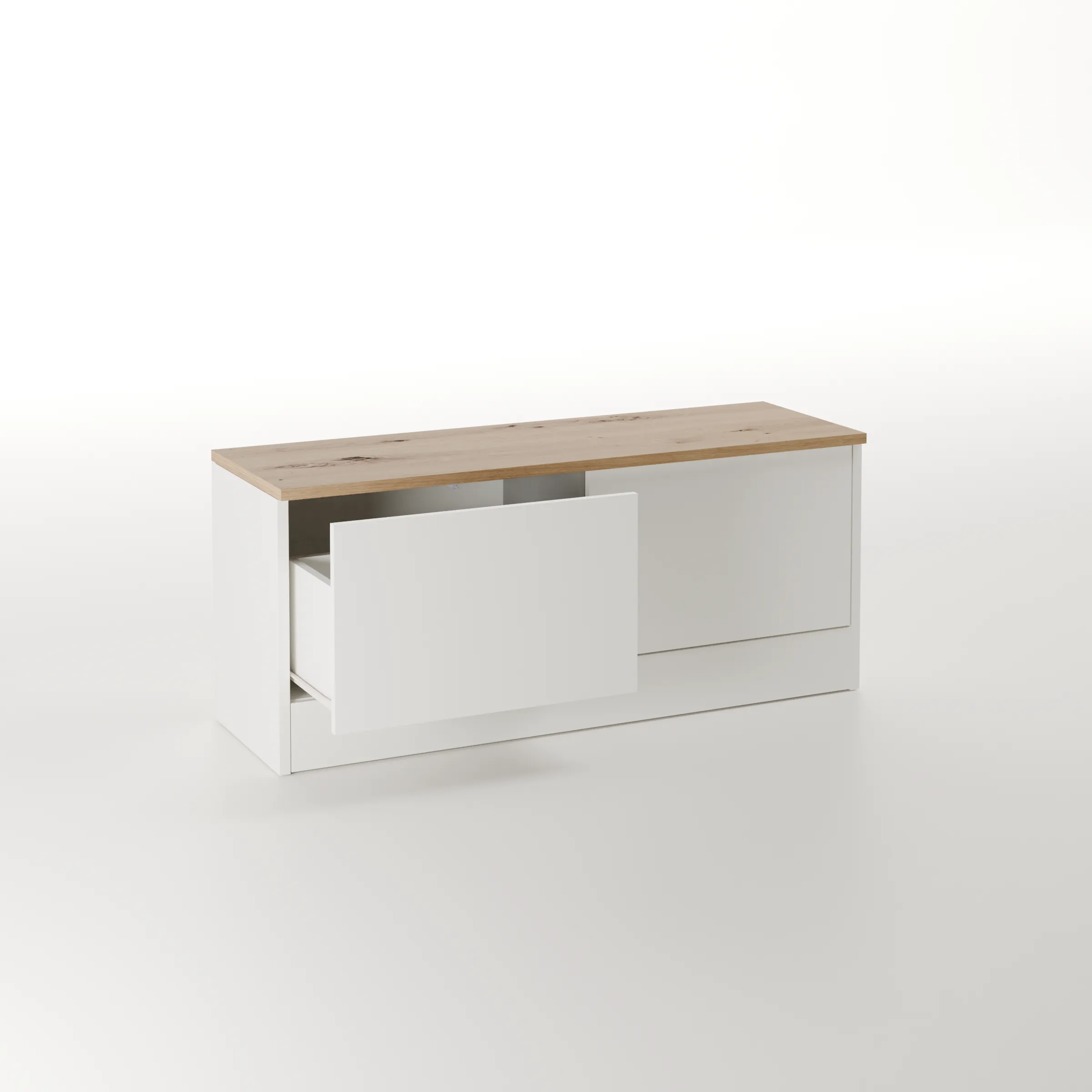 El banco con cajones destaca por su gran capacidad de almacenaje. Sus amplios compartimentos te permiten guardar desde calzado o complementos, hasta textiles, juguetes o documentos. Gracias a sus cajones de fácil apertura, tendrás todo siempre a mano y perfectamente ordenado, manteniendo el espacio limpio y despejado.