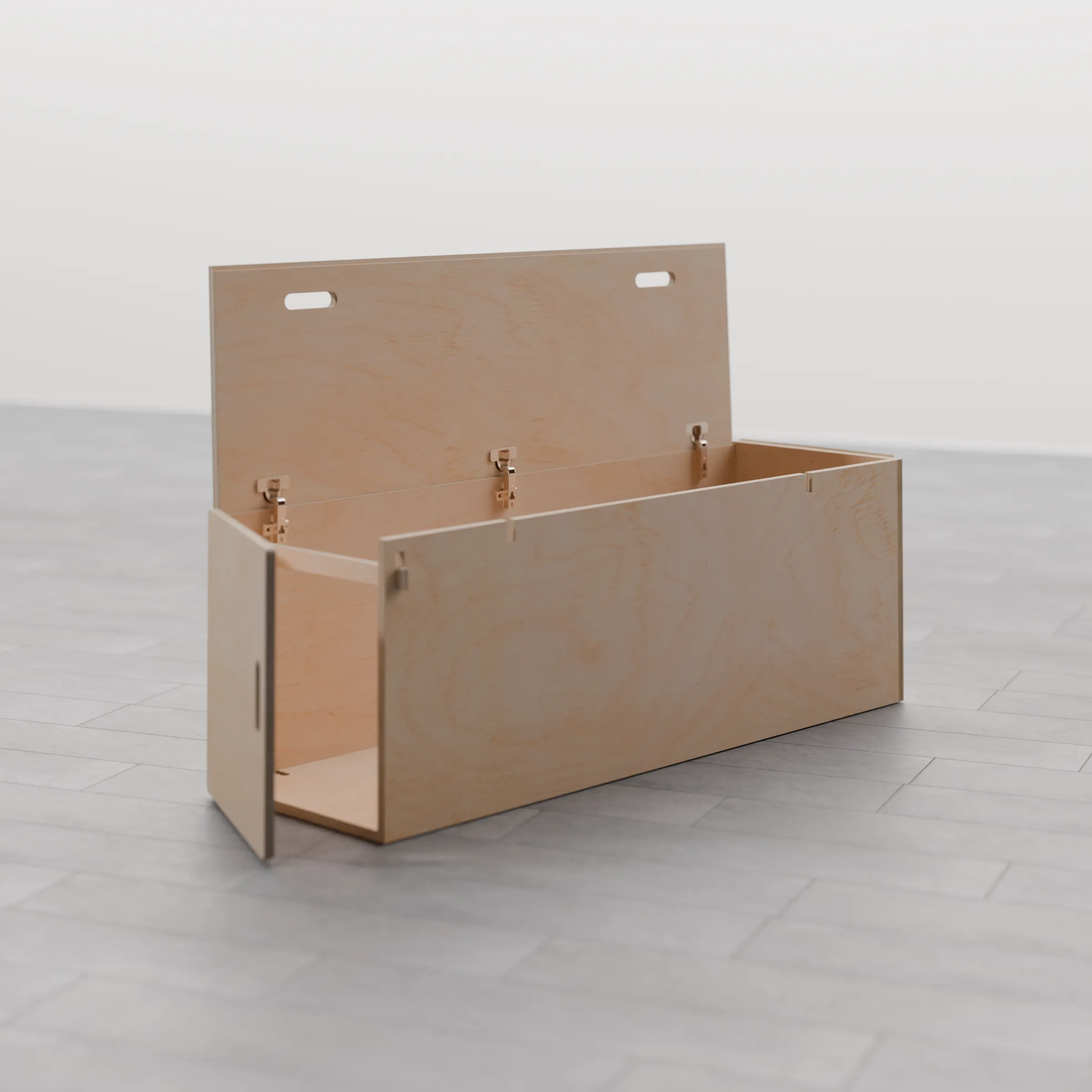 El baúl cuenta con dos accesos: una puerta frontal, que permite un acceso rápido y cómodo desde el interior del vehículo, y una tapa superior abatible, ideal para organizar o sacar objetos de mayor tamaño. Gracias a este diseño, podrás aprovechar al máximo cada rincón del espacio disponible.