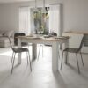 - La versión compacta mide 135 cm cerrada y se extiende hasta 186,4 cm, ideal para comedores más pequeños o espacios multifuncionales.
