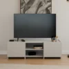 La decoración de tu salón gira entorno a tu TV y suele ser el centro de atención en el día a día. Esta es una de las razones por la que es importante tener un mueble que acompañe a la televisión, tanto en estética, como en funcionalidad. Con el mueble para TV Saba tendrás la mejor opción para tu hogar: está dividido en tres partes, dos de ellas con puerta para ocultar su contenido y un espacio central abierto para colocar los elementos o decoración más a mano.